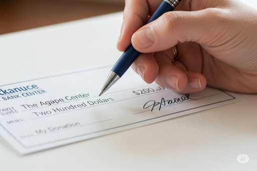 Making a contribution to The Agape Center by check allows us to avoid credit card processing fees, putting your entire donation to work for the ministry. If you’d like to donate this way,